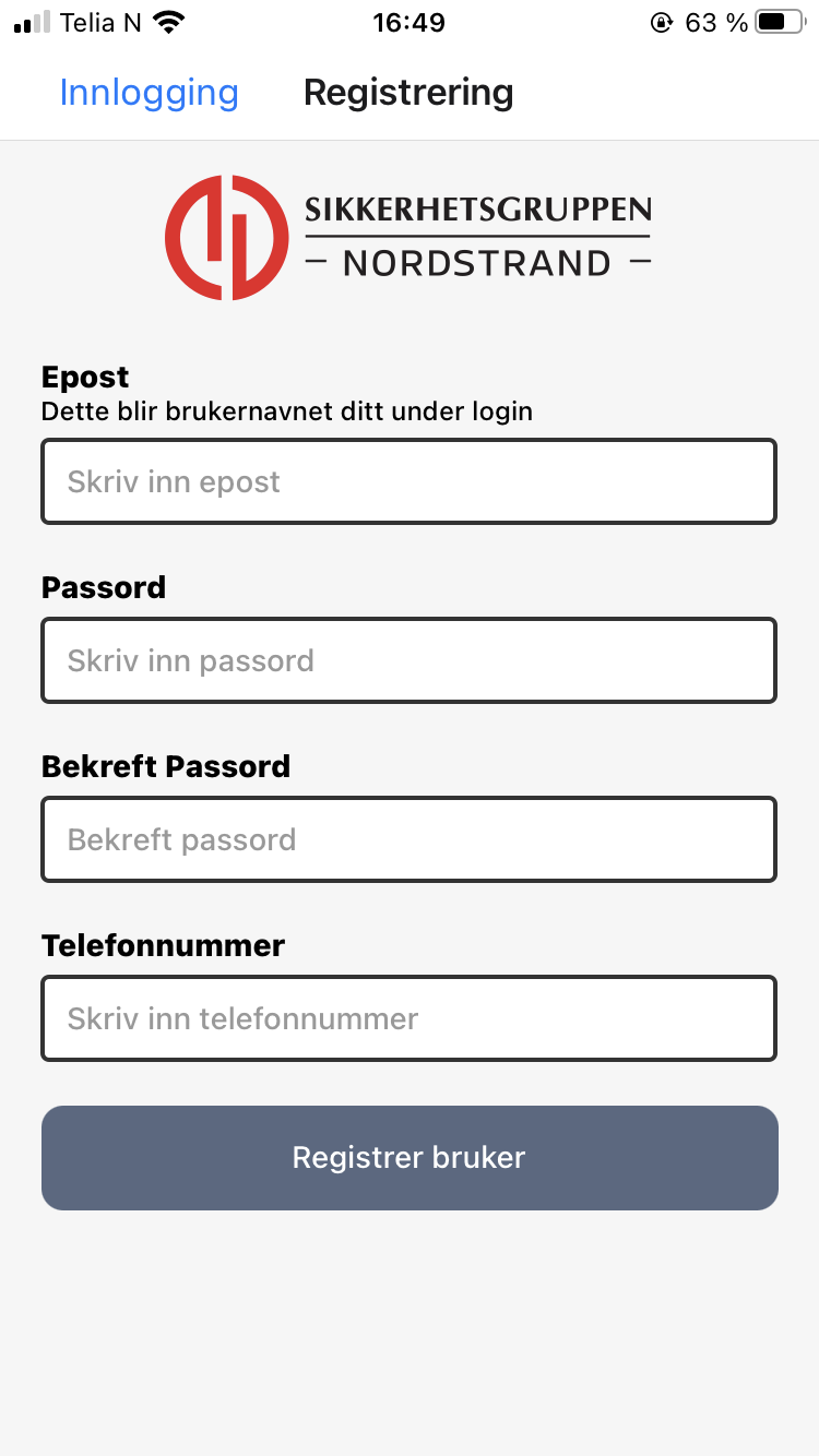1. Logg på SOS appen med personlig bruker