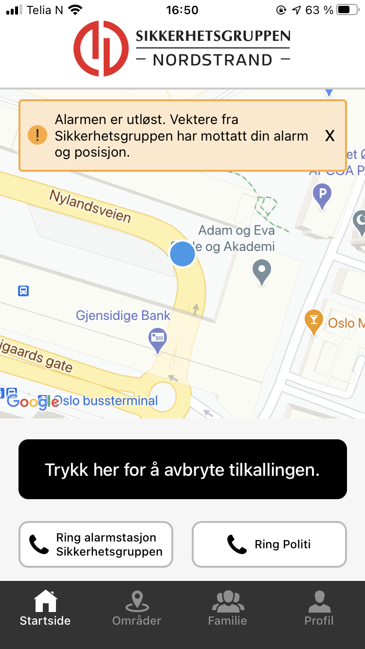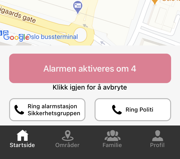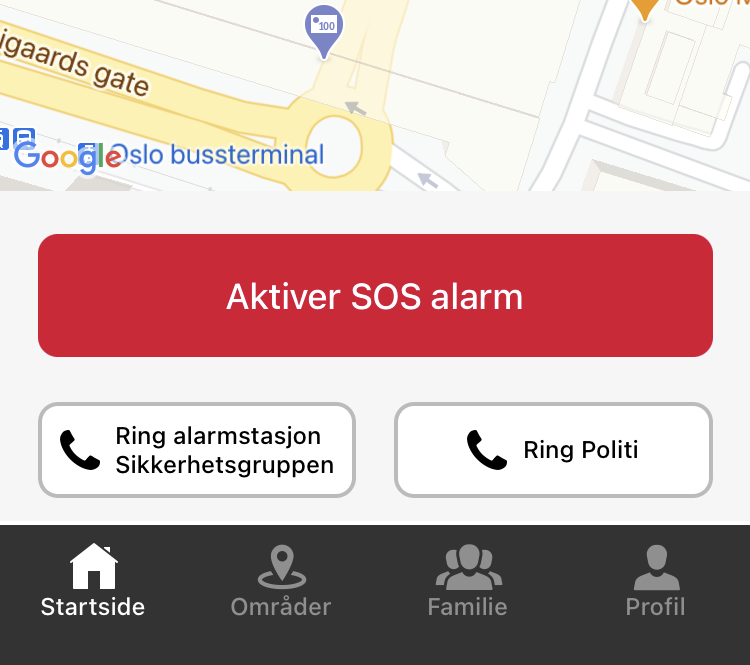 Sikkerhetsgruppen kan på ingen måte hente eller finne ut din lokasjon uten at du selv løser ut alarmen.