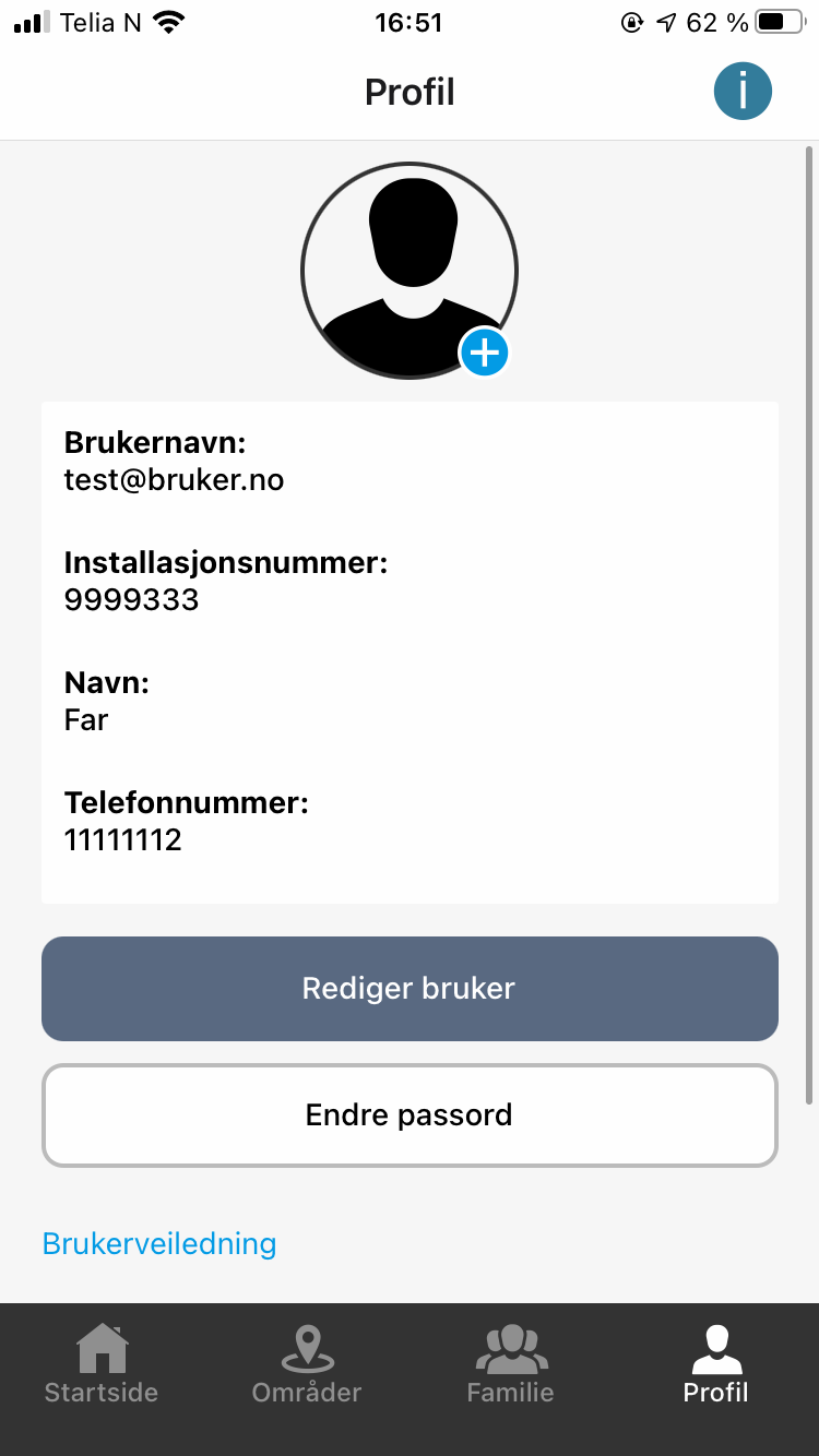 - Navn: Navnet på bruker av appen som sendes til vår alarmstasjon.